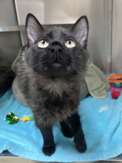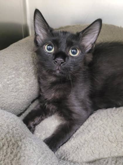 Hi, I'm Mr. Bear! I'm a fluffy black kitten with soft fur and an even softer heart. I love being held and cuddled, and I do great with other cats too. I enjoy all kinds of toys and I'm always ready for playtime or snuggles.