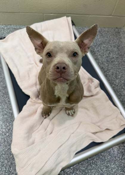 Just under a year old, Ducky is a tiny bundle of joy with a big heart and an even bigger personality. At a petite 26 lbs, she's expected to stay right around this perfect, manageable size-ideal for cuddles, adventures, and everything in between.