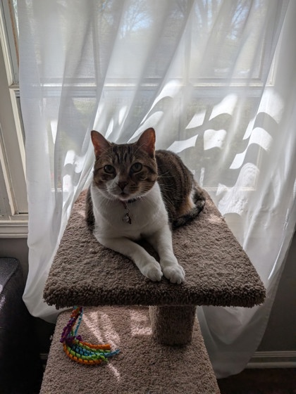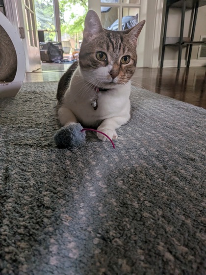 I have settled beautifully into my foster home and I enjoy being out and about, playing with all kinds of toys, and chatting with my people. I love looking out the window and snoozing on my cozy fleece blankets. As for the pineapple bed, I do visit it occasionally, but I much prefer being where the action is. One day I still plan to open my bakery with hibiscus tea and strawberry treats, but for now I am busy being fabulous.