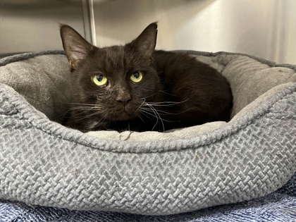 Good afternoon, I'm Kamaria. I'm a two-year-old medium-haired chocolate brown beauty with a quiet nature. I enjoy soft pets and gentle head scratches, and I'm slowly learning to trust new people. I'd love to find a calm home with a patient person who can help me come out of my shell. Once I do, you'll find I have a very loving and tender side.