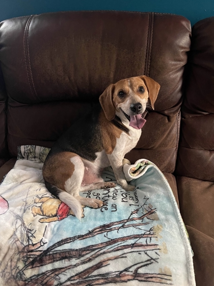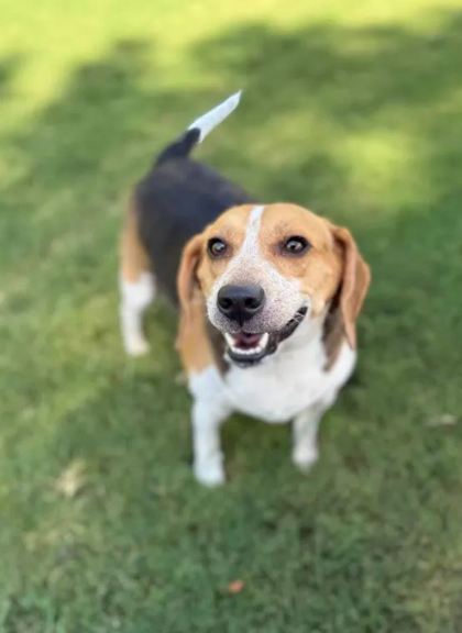 Ponyo is a 4-year-old Beagle mix with a big personality and even bigger heart! This friendly, confident guy loves to make new friends and is great with both kids and other dogs. He's the type of dog who will fit into almost any family dynamic.