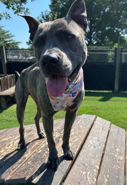 She has the cutest little howl she uses to "talk" back. Topaz has done well with calm dog friends and is still figuring out her play style. She's also been wonderful with the children she's met, showering them with gentle kisses and tail wags. She would love to have little ones in her forever home. She also walks well on leash and would be the perfect partner for your family adventures.