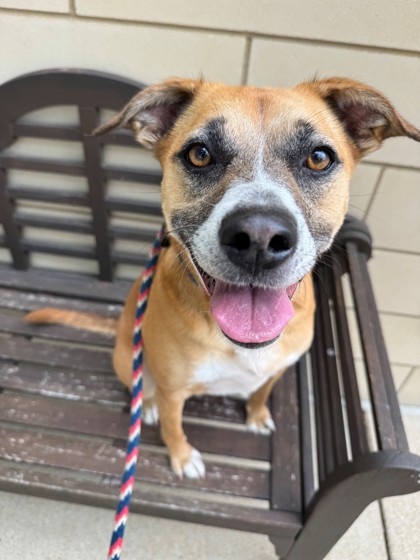 Meet Twyla, a 5-year-old, 41 lb pup with a big personality and an even bigger heart. She's confident, curious, and enjoys engaging with the world around her in her own thoughtful way.